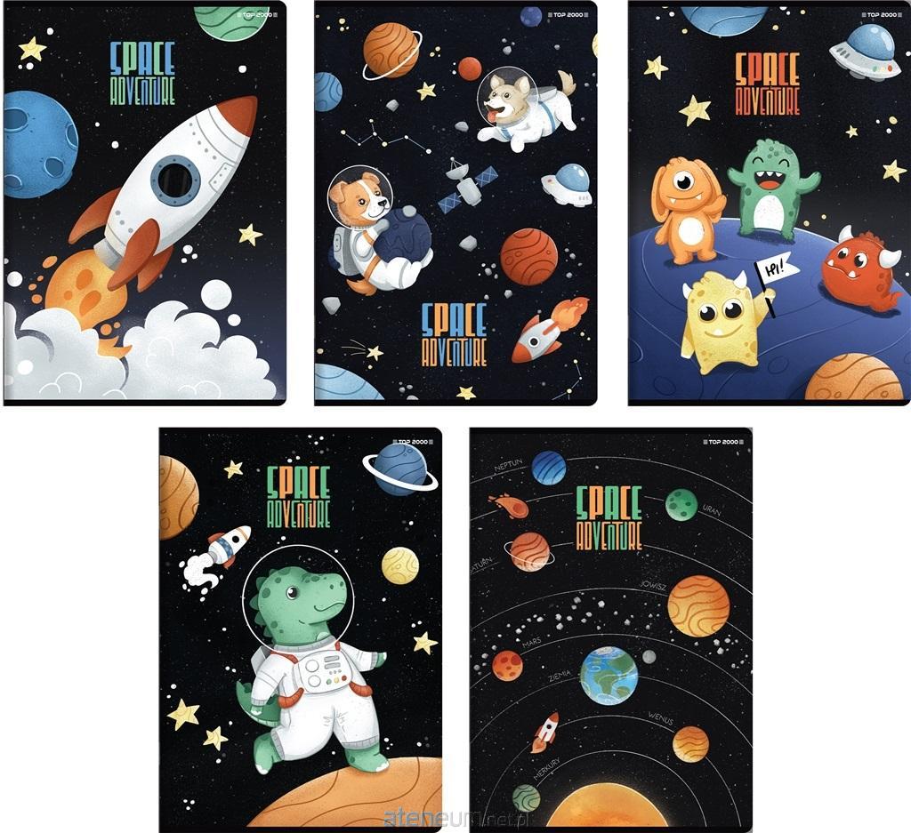Podróżuj w świat dziecięcej wyobraźni z zeszytami Top 2000 Space Adventure, których okładki przeniosą Cię w kosmiczną krainę zabawy!