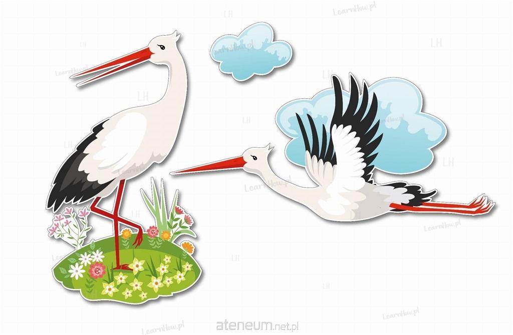 Zestaw składa się z 2 bocianów w różnych pozycjach oraz chmurki - idealne do wiosennej dekoracji szkoły i przedszkola.