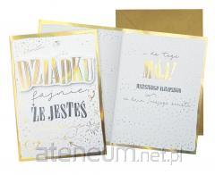 Kartka z serii Quadro to idealny pomysł na pamiątkę urodzin Kartki wyróżniają się nowoczesnym designem przedstawionym w prostej formie. Środek każdej kartki posiada specjalnie dopasowane życzenia z miejscem na własną dedykację. Całość idealnie dopełnia koperta zaprojektowana z dbałością o każdy detal pasujący do kartki. Cechy szczególne: wielkość: 15.5 x 15.5 cm po złożeniu koperta: stylistycznie dopasowana do kartki zdobienia: połyskująca folia okazja: urodziny