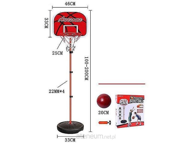 Zestaw do gry w koszykówkę, regulowana podstawa kosza 100-200cm, kosz 25x33x46cm, piłka gumowa 20cm i pompka; 47x40,5x9,5cm, Box
