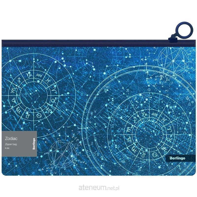 Teczka plastikowa Berlingo z efektem brokatu, zapinana na zamek błyskawiczny z wzorem"Zodiac", rozmiar A4.Jasny, atrakcyjny design.Efekt iskrzenia uzyskuje się poprzez oświetlenie, szczególnie zauważalne przy zimnym oświetleniu LED.Niezawodny zamek błyskawiczny z płynnym przesuwem i wygodnym suwakiem wraz z uchwytem pierścieniowym.Szybki dostęp do dokumentów.Wykonany z wysokiej jakości polipropylenu o fakturze powierzchni skórka pomarańczy, która nie wykazuje odcisków palców i drobnych rys.Przeznaczony do przechowywania dokumentów.Grubość 180 mikronów.Mieści do 100 arkuszy kartek A4. Indywidualny kod kreskowy na każdej teczce wraz z naklejką informacyjną.