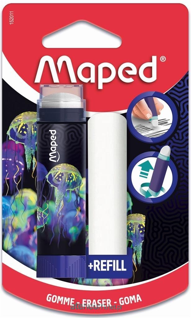 Blister zawiera 1 gumkę w obudowie oraz dodatkową gumkę/sztyft w zapasie.