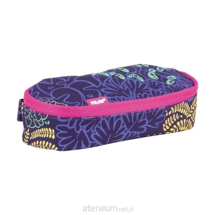 Piórnik owalny MILAN zapinany na suwak z kolekcji ŚWIETLIKI. W środku dodatkowa kieszonka z siatki. Nadruk prezentujący różne formy roślinności, przywołuje na myśl środowisko, w którym żyją świetliki. Kolory są tak jasne, jak światło świetlików: liliowy, fuksja, żółty i zielony, które wyróżniają się na ciemnoliliowym tle. Zamek błyskawiczny i detale w kolorze fuksji. Skład: Materiał zewnętrzny i wewnętrzny 100% poliester. Wymiary: 20,5 x 9 x 5,5 cm.