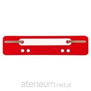 Wąsy do skoroszytów MemoBe. Długość 15 cm i szerokość 3,4 cm. Elementy z mechanizmem skoroszytowym, z metalową taśmą mocującą. Posiadają dziurowanie o rozstawie oczek 6-8 cm do włożenia do segregatora. Zestaw zawiera 25 sztuk w czerwonym kolorze.