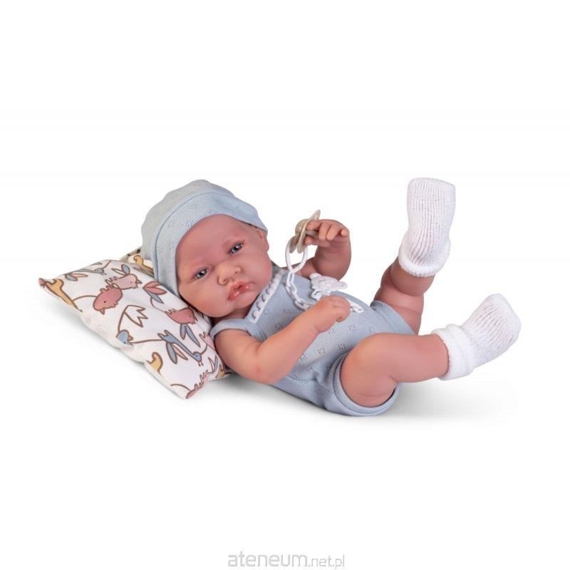 Jedna z najpiękniejszych lalek hiszpańskich z kolekcji Antonio Juan Recien Nacido 50409 ubrana jest w ręcznie szytą, niebieską, bawełnianą piżamkę na ramiączkach. Dzięki zastosowaniu zapięcia na rzep łatwo jest ją zdjąć. Outfit dopełniają miękkie, białe skarpetki oraz ciepła czapeczka. Zabawę urozmaicają akcesoria: smoczek na łańcuszku z klipsem w kształcie misia oraz przytulna poduszka w kolorowe zwierzątka. Oryginalne, designerskie opakowanie z wieczkiem może spełniać rolę łóżeczka dla bobasa. Lalki hiszpańskie Antonio Juan posiadają wszystkie wymagane certyfikaty bezpieczeństwa i nadają wyjątkowego charakteru każdej kolekcji zabawek.