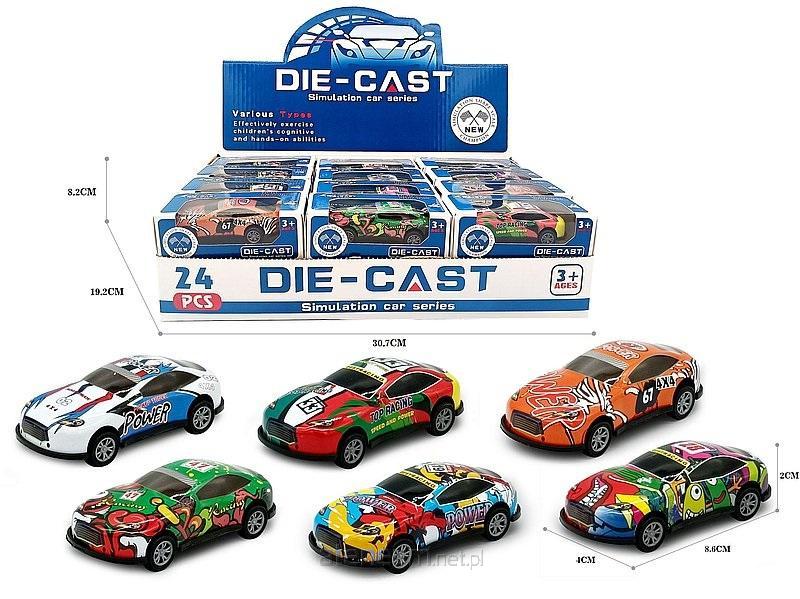 Auto metalowe 8,5x4x2cm, display 24szt; 31x19x8cm, Box
