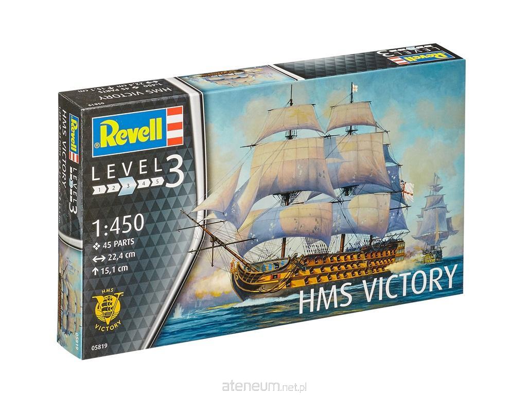 H.M.S. "Victory" - brytyjski trójpokładowy okręt liniowy z XVIII wieku, który brał udział w licznych bitwach morskich. Zalecane kolory farb: 32109, 32115, 32156, 32188, 32193, 32301, 32302, 32314, 32382. Plastikowy model do sklejania Revell ( REV-05819 ) nie zawiera w komplecie farb i kleju. Specyfikacja Numer katalogowy:REV-05819 Producent: Revell Wymiary: 311x183x46 Długość: 224 mm Wysokość: 151 mm Skala: 1:450 Stopien trudności: 3 Ilość elementów: 45 Instrukcja: tak Grupa wiekowa: 10+