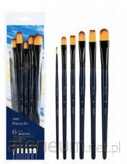 Zestaw 3 szt. pędzli szkolny płaskich z serii 121 nr 6, 8, 10 z krótkim drewnianym trzonkiem. Skład: 70% naturalnego włosia koziego + 30% syntetyczne. Brązowe lakierowane wykończenie i aluminiowa skuwka bez spawania, odporna na rdzewienie. Bardzo miękkie włosie idealne do technik akwarelowych, wodnych i plakatowych. Lepsze zatrzymanie wody i farby. Gładsza linia. Lepsza odporność i elastyczność, co ułatwia odzyskanie kształtu po jego użyciu.