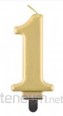Świeczka cyferka 1 Beauty&Charm metalik złota 8cm