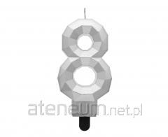 Świeczka cyferka 8 - Diament metalik srebrny 7,6cm