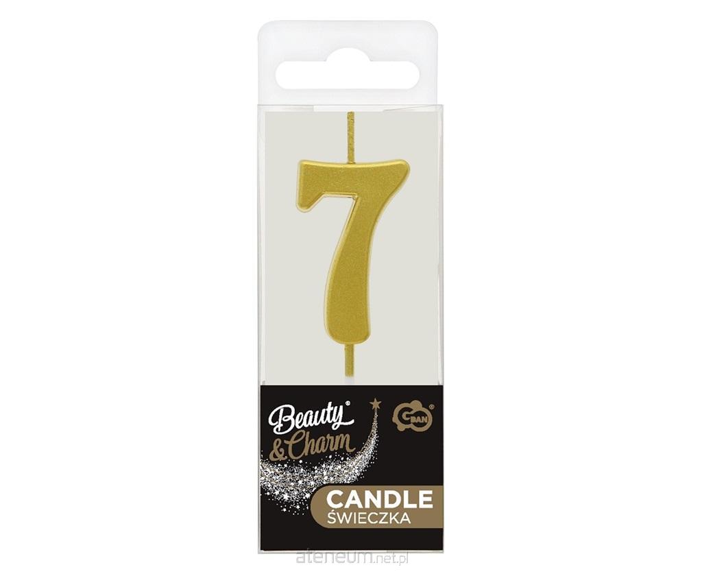 Świeczka cyferka 7 Beauty&Charm metalik złota 8cm