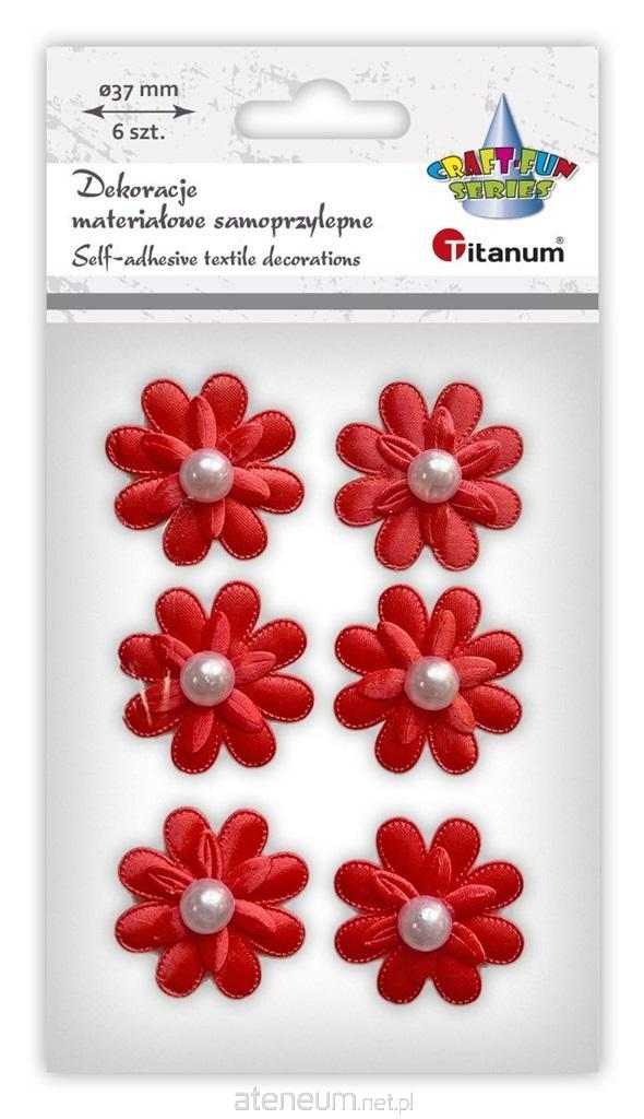 Dekoracje samoprzylepne materiałowe 3D kwiaty O37mm czerwone z perełką 6szt.