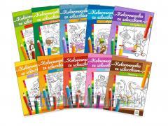 Polecamy serię książeczek z pięknymi obrazkami do kolorowania. Zróżnicowana tematyka obrazków pozwoli dzieciom pogłębiać wiedzę o otaczającym świecie. Ponadto w każdej książeczce znajdują się elementy wzorów graficznych na szlaczkach, które umożliwiają doskonalenie zdolności manualnych oraz uczą poprawnego kreślenia linii i różnych kształtach i kierunkach - w ograniczonej przestrzeni.