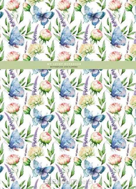 Notatnik 145x197 48 kartek kratka 23144 kwiaty i motyle. Wyprodukowano na Ukrainie.