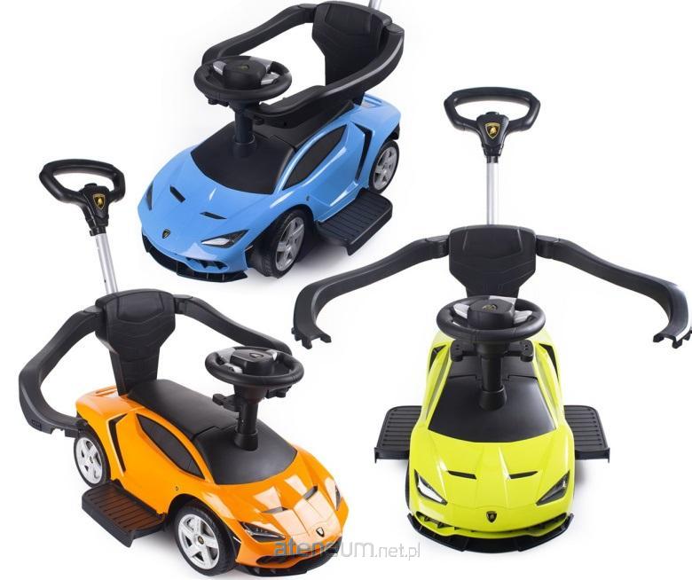 Pojazd posiada oryginalną licencję LAMBOGHINI , wykonany z wysokiej jakości materiałów. Dbałość o szczegóły jest widoczna na każdym z elementów pojazdu. Pojazd może służyć dzieciom w wieku od 2-6 lat. W początkowej fazie pojazd może służyć jako wózek oraz może być przydatny przy stawianiu pierwszych kroków dziecka. Wraz z upływem czasu można zdemontować poszczególne elementy pojazdu: barierki zabezpieczające, pchacz, oraz podnóżki. Po ich demontażu dziecko może korzystać z pojazdu nawet do wieku 6 lat.