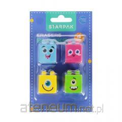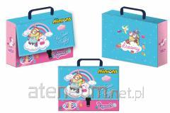 Zestaw z motywem MINIONKI zawiera gumkę oraz temperówkę.