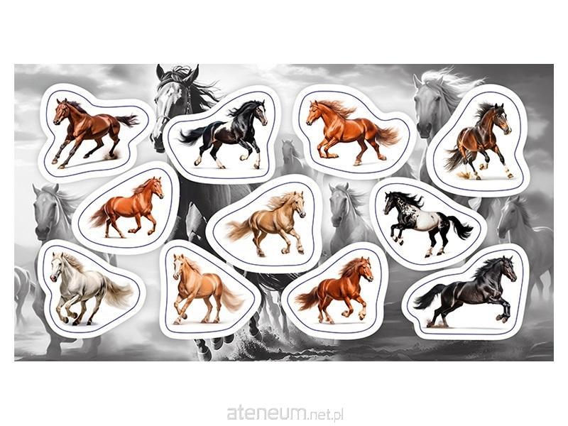 Zestaw naklejek do ozdoby zeszytów, albumów, listów, pocztówek ... 11 naklejek przepięknych koni rożnych maści w galopie POLECANE DO SZKÓŁ