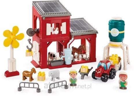 Duża ekologiczna farma z panelami słonecznymi i turbiną wiatrową. Gospodarstwo obejmuje również parę rolników, traktor z przyczepą oraz silos zbożowy. Wyprodukowane we Francji. 18 m+