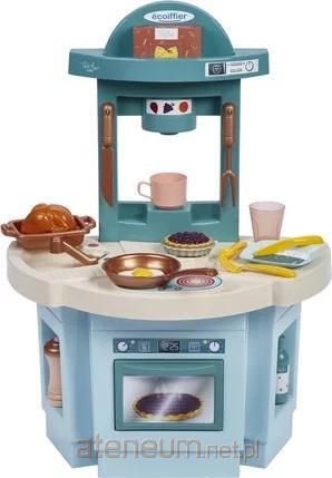 Kuchnia z piekarnikiem, zlewem i 18 akcesoriami w tym patelnia z jajkiem, brytfanka z kurczakiem, naczynia, sztućce, kubeczki. Do produkcji serii Vert Azur wykorzystywane są odpady po produkcji zabawek Ecoiffier. Wyprodukowane we Francji. Wymiary: 43,5 x 27 x 60 cm, 18 m+