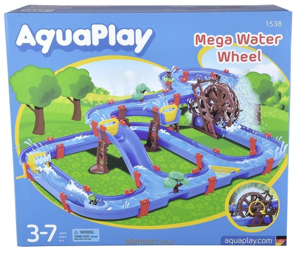 Pierwszy 2 poziomowy zestaw AquaPlay, wykonany z przyjaznego środowisku plastiku odpornego na blaknięcie na słońcu. Zestaw składa się z 63 elementów. Duże koło młyna wodnego, 3 drzewa, 2 łódki i 2 figurki. Łatwy w rozbudowie oraz w przenoszeniu. Wyprodukowany w Niemczech. Wymiary: 126 x 104 x 50 cm, 3 l+
