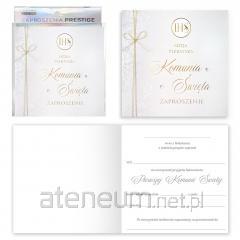 Zaproszenie Premium na Komunię ZP-052 Zaproszenia z serii Premium ZP wyróżniają się elegancją i wyjątkowym opakowaniem. Zdobienia w zależności od wzoru zawierają dekoracyjne elementy doklejane - perełki, kokardki, akcenty biżuteryjne; tłoczenia oraz przynajmniej dwie uszlachetnienia, takie jak folia perłowa lub holograficzna albo delikatny brokat. Zaproszenia pakowane są po 5 sztuk, mają w zestawie dopasowane koperty, a na specjalnej wkładce z tyłu można przeczytać tekst zaproszenia. Cechy szczególne: typ produktu: zaproszenie na Komunię zdobienia: doklejane elementy dekoracyjne, tłoczenie przestrzenne, przynajmniej dwa uszlachetnienia z folii lub brokatu, orientacyjna wielkość: 14,5 x 14,5 cm w opakowaniu: 5 sztuk zaproszeń z dopasowanymi kopertami, okazja: Komunia