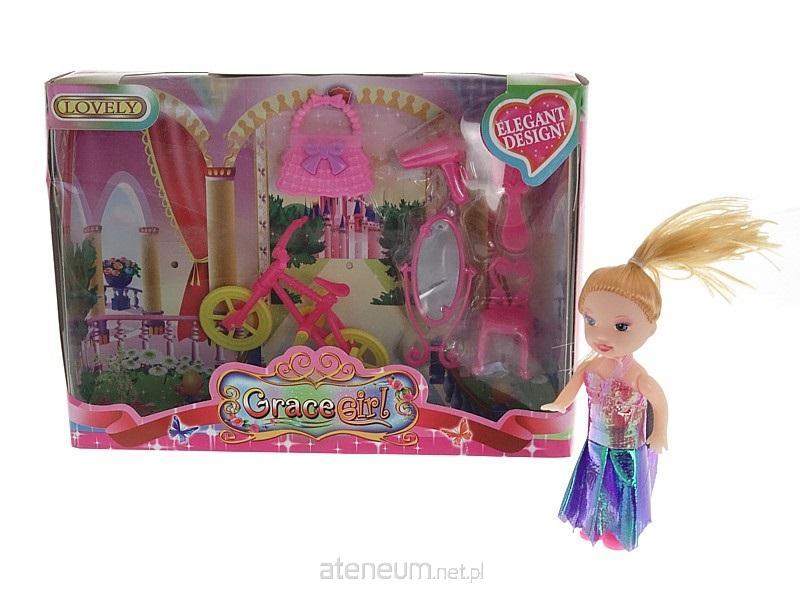 lalka mini 9cm z rowerem i toaletką; 21x15x5cm, W/B