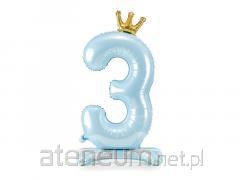 Stojący, metalizowany balon foliowy w kolorze błękitnym z koroną w kolorze złotym, rozmiar przed napompowaniem 103 cm (40.5''), rozmiar po napompowaniu 84 cm (33''). Do napompowania powietrzem.