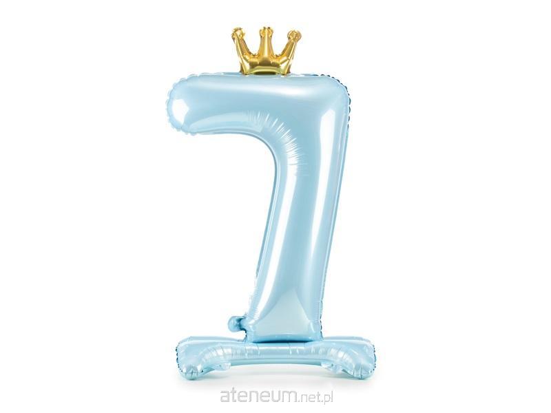Stojący, metalizowany balon foliowy w kolorze błękitnym z koroną w kolorze złotym, rozmiar przed napompowaniem 103 cm (40.5''), rozmiar po napompowaniu 84 cm (33''). Do napompowania powietrzem.