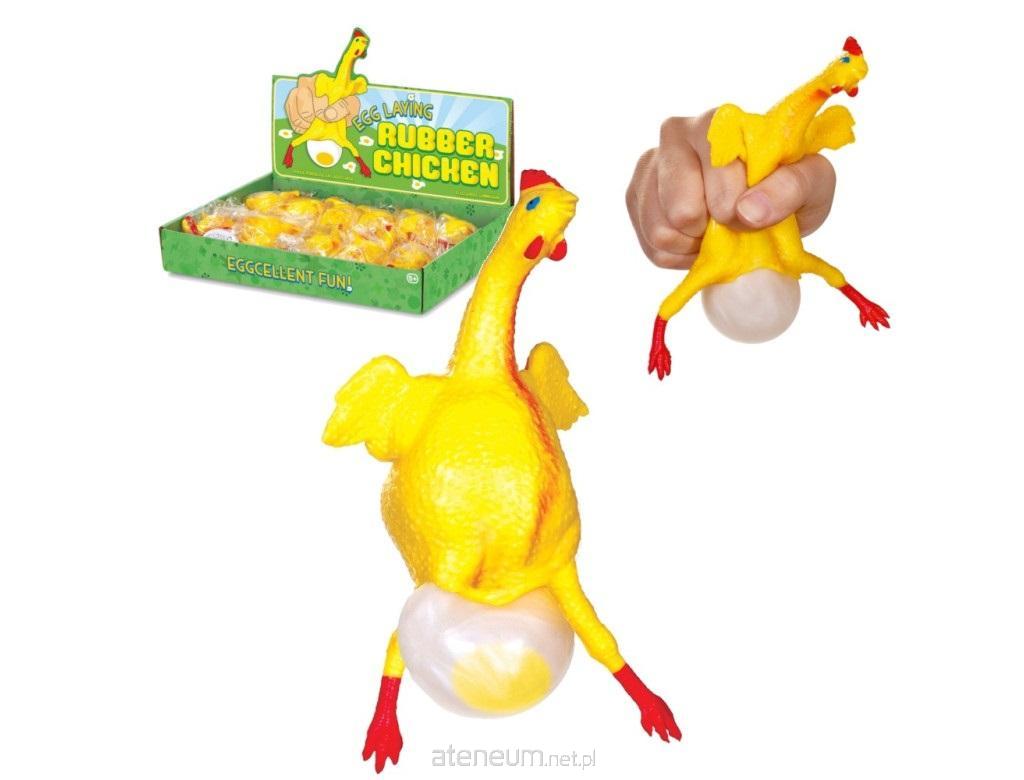 Zabawka wykonana z wysokiej jakości gumy, która po naciśnięciu zawsze wraca w nienaruszonym stanie do swojego pierwotnego kształtu. Wewnątrz kury znajduje się jajko, które pod wpływem nacisku na zabawkę wypełnia się powietrzem i zostaje wypchnięte na zewnątrz. Jest ono umieszczone w tylnej części zabawki, dlatego całość wygląda bardzo naturalnie. Kura znosi jajko, na którym widnieje podobizna żółtka oraz białka. Zabawka wielkości 17cm.