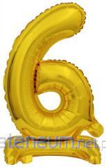 Balon foliowy mini cyfra 6 ze stopką złota 22x40cm