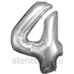Balon foliowy cyfra 4 srebrna 65x86cm