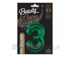 Balon foliowy B&C cyfra 3 zieleń butelkowa 85cm