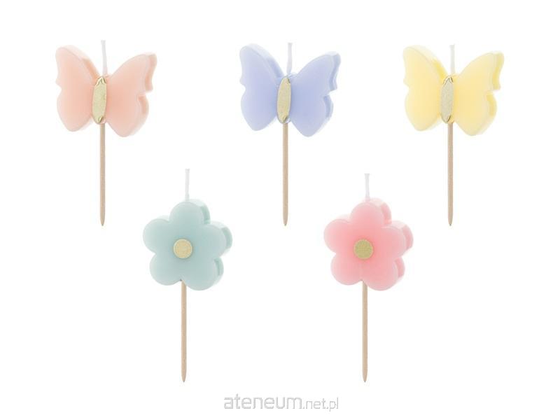 Świeczki urodzinowe Motylki, mix wzorów i kolorów, wysokość ok. 3.5 cm.(1 op. / 5 szt.)
