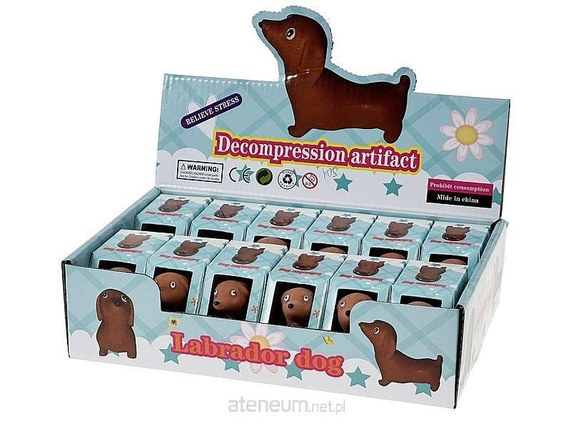 Gniotek pies 7x6x3,5cm, z piaskiem, display 12szt; 23x15,5x6cm