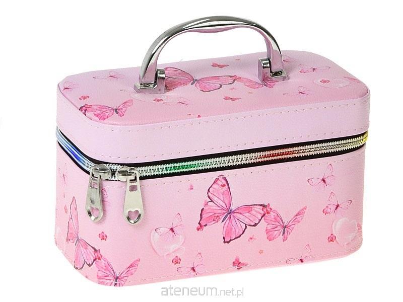 kuferek S z lusterkiem, wzór motyle, zapinany na zamek; 19x12x11cm, Box