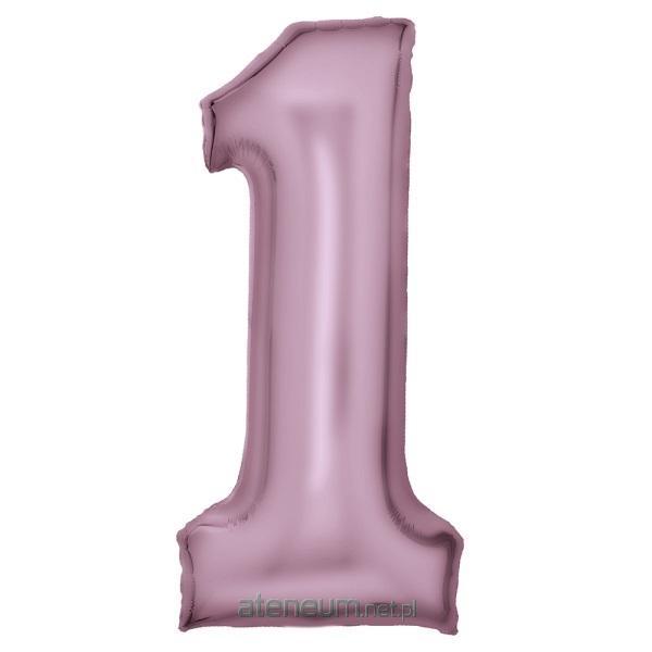 Balon foliowy cyfra 1 satynowa pastelowy róż 86 cm