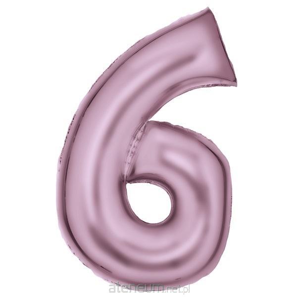 Balon foliowy cyfra 6 satynowa pastelowy róż 86 cm