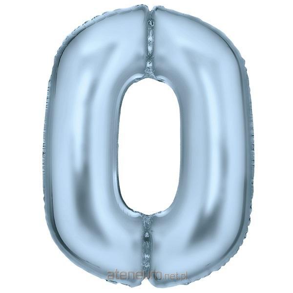 Balon foliowy cyfra 0 satynowa pastelowy niebieski 86 cm