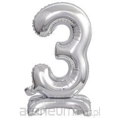 Balon foliowy mini cyfra 3 na stojaku srebrna