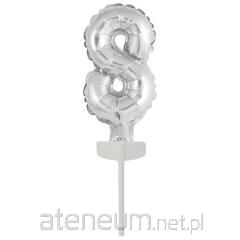 Balon foliowy mini cyfra 8 srebrna 6,5x12cm