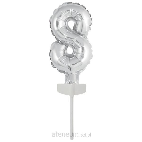 Balon foliowy mini cyfra 8 srebrna 6,5 cm x 12 cm