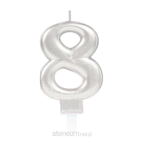 Świeczki cyferki 8 Sparkling Celebrations z uchwytem srebrna 9.3 cm