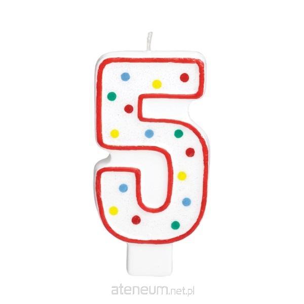 Świeczka urodzinowa cyferka 5 biała w kropki