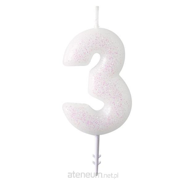 Świeczka cyferka 3 m błyszcząca