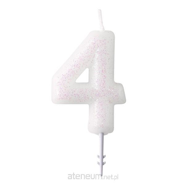 Świeczka urodzinowa cyferka 4 biała w kropki