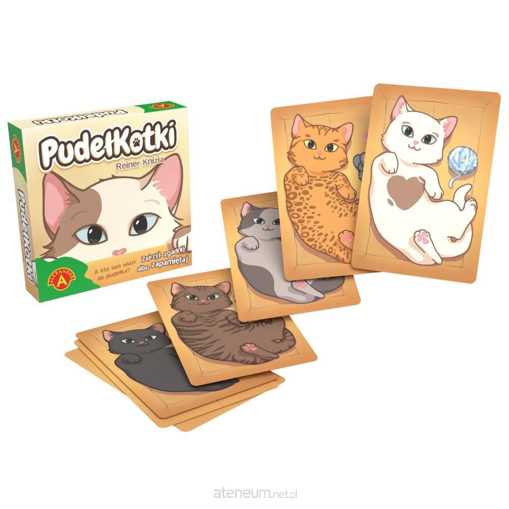 PudełKotki to lekka pamięciówka nie tylko dla miłośników kotów. Należy zapamiętać barwę i umaszczenie naszych pupilków (np. łatki, paski) oraz ich zabawkę. Na stół wykładamy karty z wizerunkiem pudełek, w których ukrywają się kotki. Każda karta to różna kombinacja trzech elementów. Rzut kośćmi wskaże, o którą kartę i o jaki atrybut chodzi. Jeśli pamiętasz (lub zgadniesz), wygrywasz.