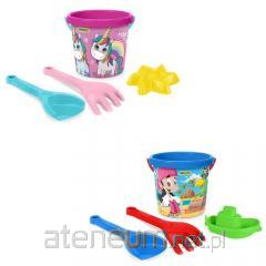 Dodatkowym wyposażeniem zestawu jest komplet letni, w skład którego wchodzi wiaderko, sitko, łopatka, grabki oraz foremka.