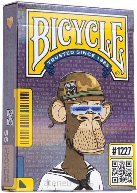 Bicycle® Bored Ape z holograficznymi goglami i kaskiem wildcard. "Kolekcja wspólnych kart do gry Bored Ape inspirowana i przedstawiająca 57 małp z Bored Ape Yacht Club, ożywiona przez kultową markę Bicycle i zaprojektowana przez AV Tones.