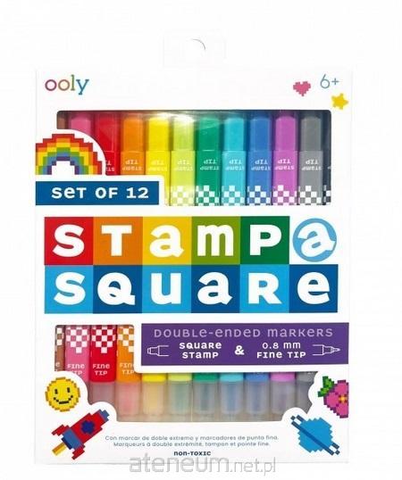 Cienkopisy dwustronne, z pieczątkami w kształcie pikseli, Stamp-A-Square Zestaw 12 kolorów