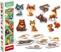 Zestaw puzzli: zabawa zestawem polega na łączeniu dwóch elementów w jeden tak, aby powstał obrazek zwierzaka. Aż 20 różnych obrazków przedstawia różnorodne zwierzęta domowe, takie jak pies, kot, królik czy kura. Dzięki temu dzieci mają możliwość poznawania różnorodnych gatunków zwierząt i ich cech charakterystycznych.